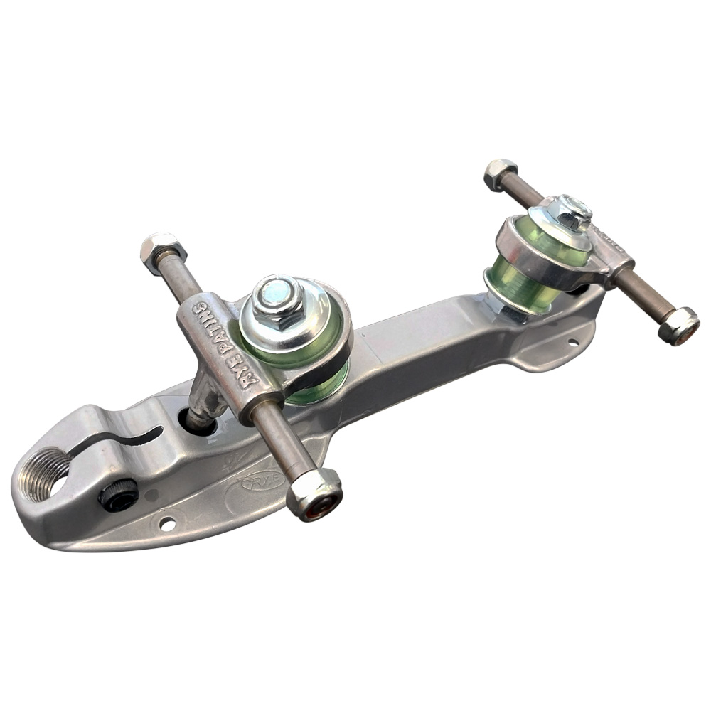 Base Adventure é feita em alumínio (Liga Leve) com medidas profissionais, Trucks de 8mm, com eixo fixo, amortecedores em borracha e freios reguláveis.